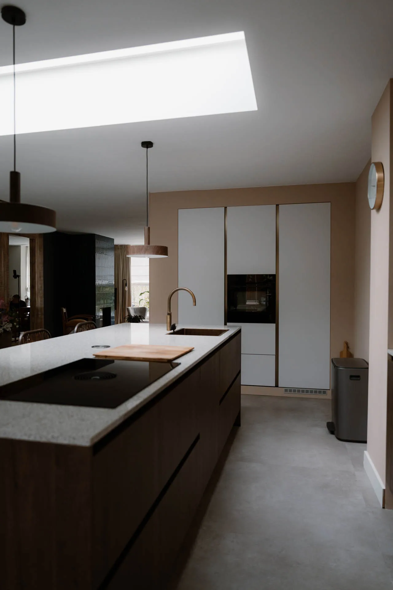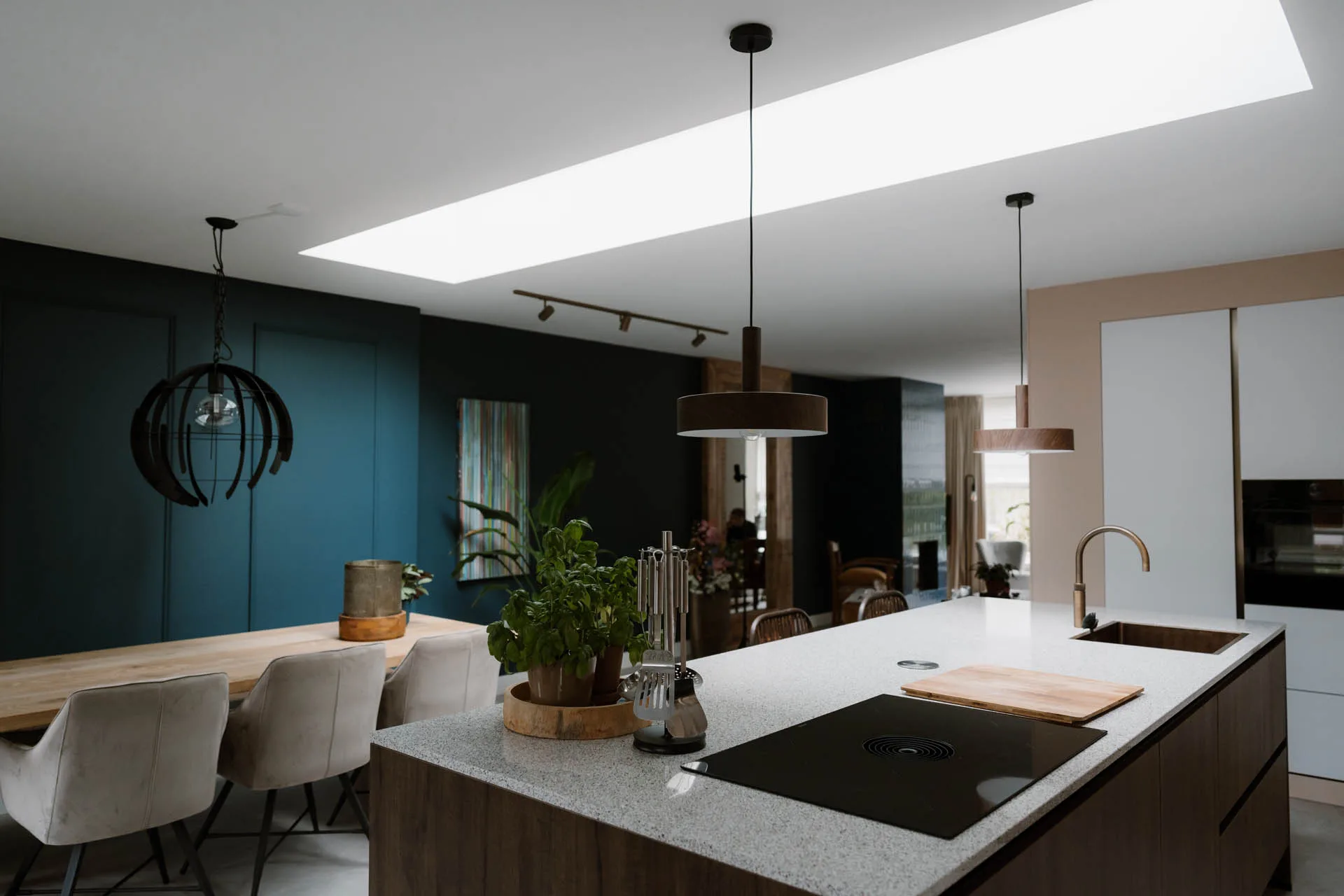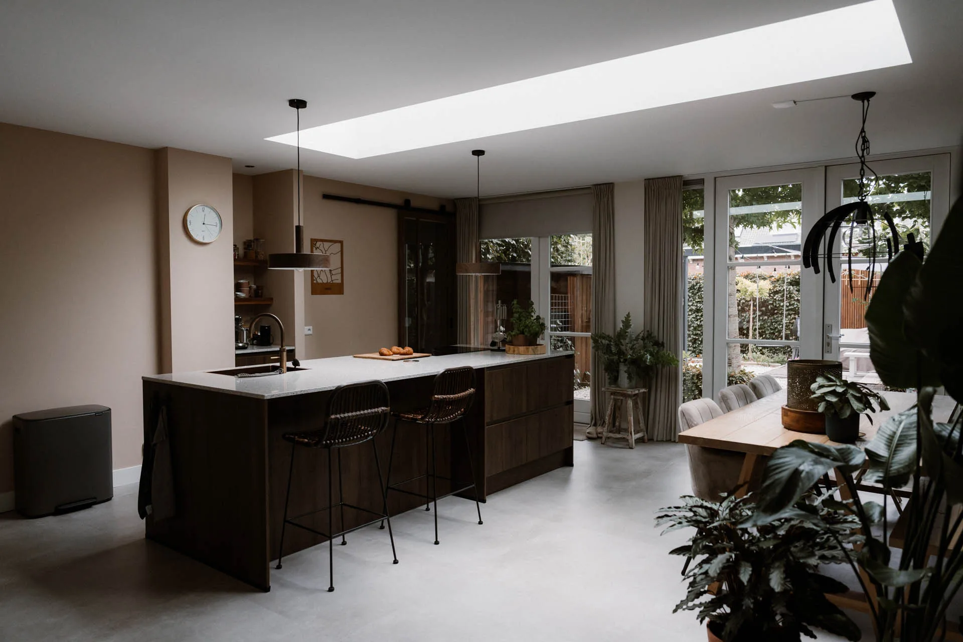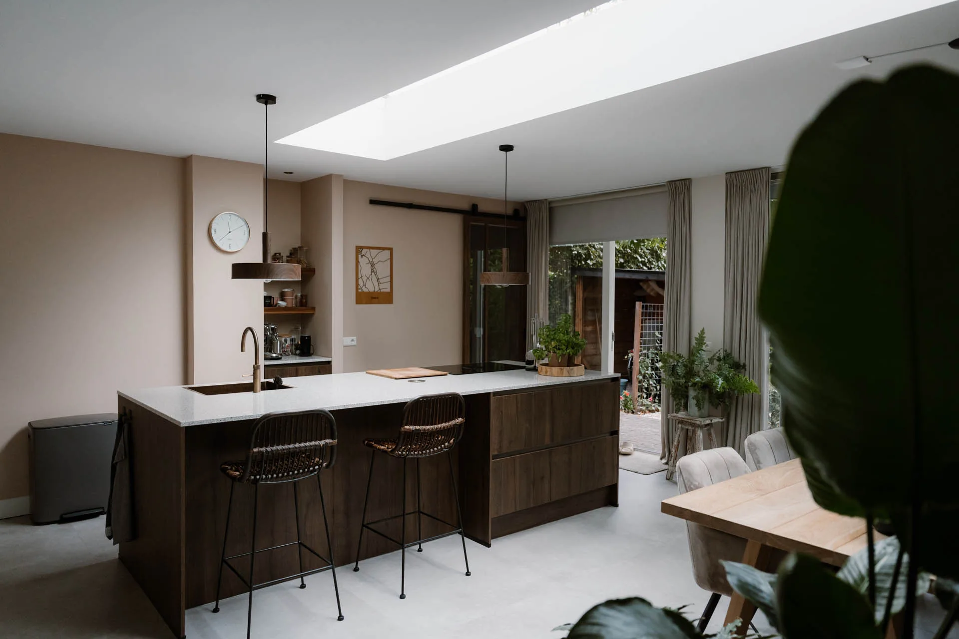 LOAK creëerde een prachtige aanbouw over de volle breedte van deze woning, met een groot dakvenster voor extra licht en ruimte. Dankzij heldere communicatie en hoogwaardige materialen sloot alles naadloos aan op de bestaande woning. Zelfs onverwachte uitdagingen pakten we flexibel en vakkundig aan. Op zoek naar een aannemer die meedenkt en kwaliteit levert? LOAK staat voor je klaar!